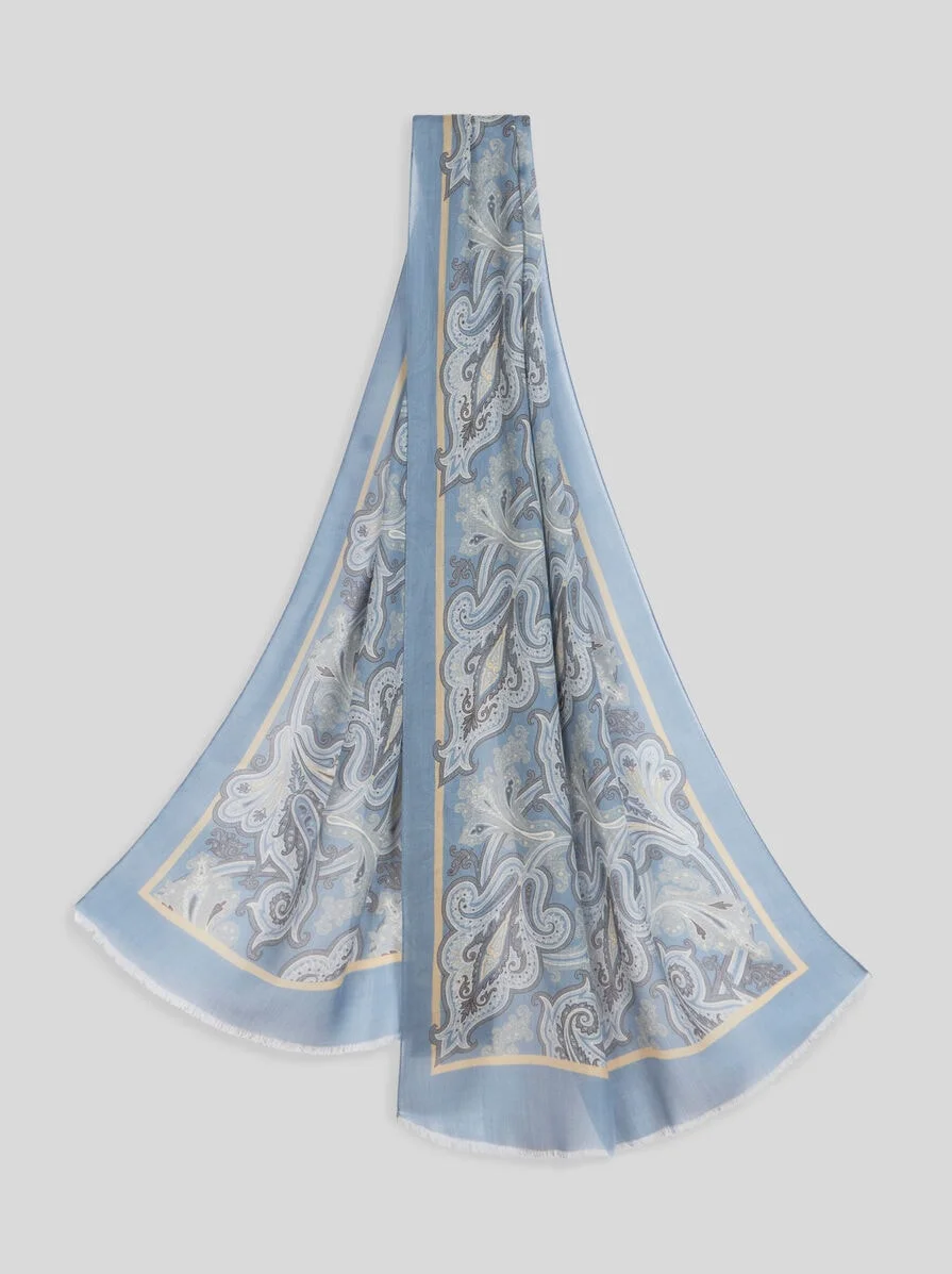 Cashmere scarf with all-over paisley print. This accessory features small fringe details on the trims. • Size: 70 x 200 cm • Made in Italy PRODUCT DETAILS • 100% cashmere