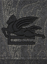 Paisley cotton-blend wallet Highlights - Black - Cotton blend - Paisley print - Embroidered logo to the front - Foldover top with press-stud fastening - Internal card slots Made in Italy Composition Outer: PVC 100%, Cotton 76%, Polyester 24% Lining: Nylon 100% SIZE & FIT Measurement LENGTH 4.33 in(11 cm) WIDTH 2.75 in(7 cm)