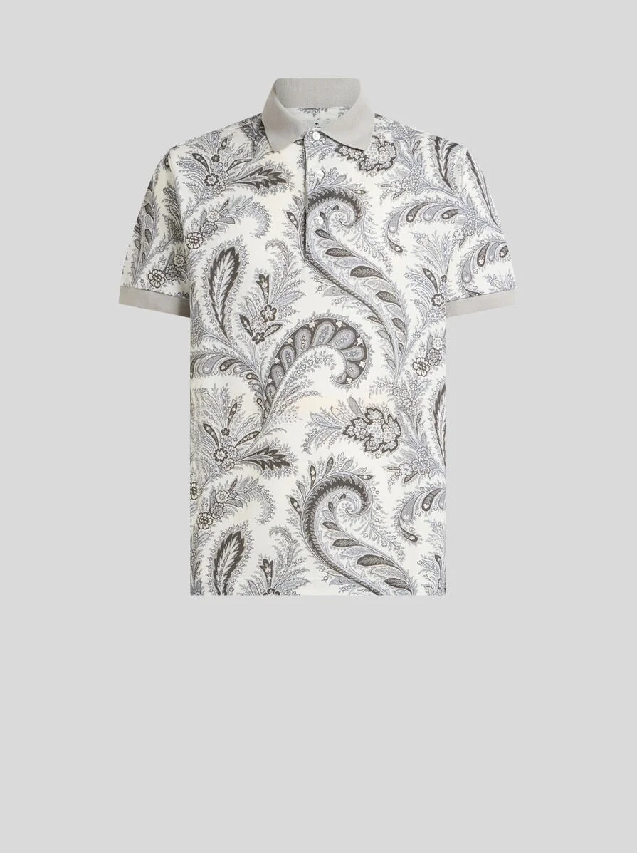 Pure cotton pique polo shirt with all-over floral Paisley print. Completing the garment are the plain-coloured sleeve ends and collar. • Roma regular fit • Short sleeves • Made in Italy • The model is 6' 1½" (187 cm) tall and wears a size M PRODUCT DETAILS • 100% cotton