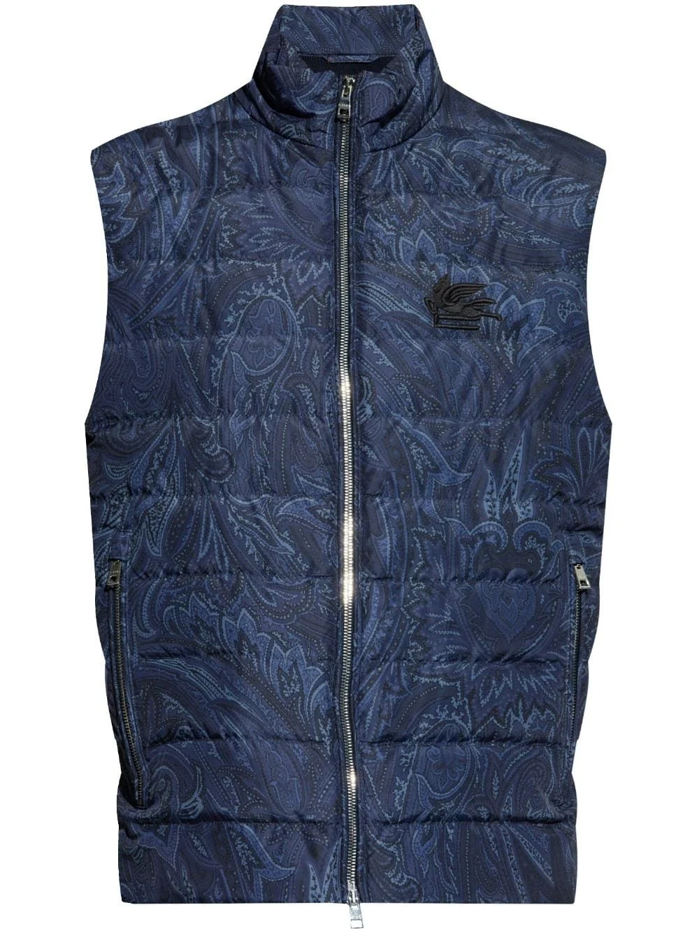 paisley-print padded waistcoat Highlights - Blue - Padded design - Quilted finish - Paisley print - Embroidered pegaso motif - Stand-up collar - Front two-way zip fastening - Sleeveless - Two side zip-fastening pockets - Straight hem Imported Composition Outer: Polyester 100% Lining: Polyester 100% SIZE & FIT FittingInformation Designed for a relaxed fit, this piece allows for comfort and movement when worn Made from a midweight fabric