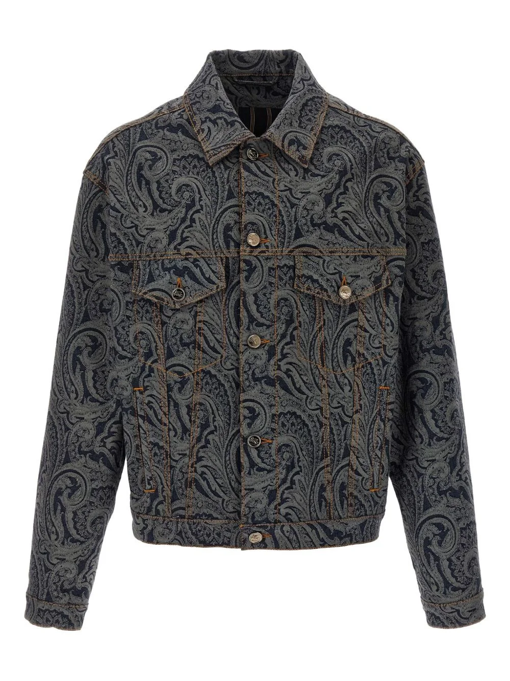 paisley cotton denim jacket Highlights - Black - Paisley pattern - Classic collar - Button closure - Flap pockets - Long sleeves - Buttoned cuffs Made in Italy Composition Cotton 98%, Elastane 2% Washing instructions Read Manufacturer Guidelines