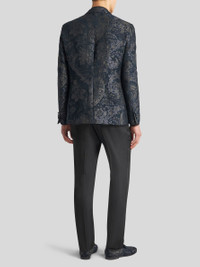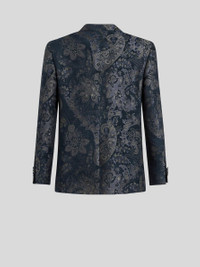 Single-breasted jacquard blazer with floral Paisley motif. This model features a contrasting floral-patterned jacquard undercollar and leafy-patterned jacquard inner lining. • Regular fit • Peak lapels • Single-breasted button closure • Welt breast pocket • Side slip pockets with flap • Working cuffs • Horn buttons • Rear vent • Made in Italy • The model is 6’1”(186 cm) tall and wears a size 48 (IT) PRODUCT DETAILS • 52% viscose, 36% polyester, 12% modal