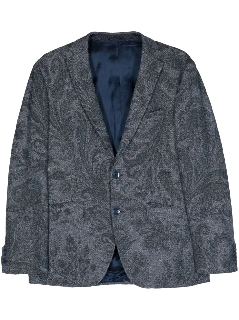 paisley-jacquard cotton blazer ETRO combines exquisite tailoring with its signature Italian flair to create this blazer. It’s spun from cotton to a single-breasted silhouette and woven with a jacquard paisley print in tonal blue hues. Highlights - Cotton - Ocean blue - Full jacquard - Paisley print - Notched lapels - Front button fastening - Long sleeves - Buttoned cuffs - Chest welt pocket - Two front flap pockets - English rear vents - Full lining Made in Italy Composition Lining: Viscose 100% Outer: Cotton 100% Washing instructions Dry Clean Only