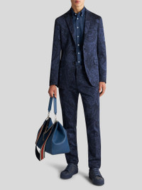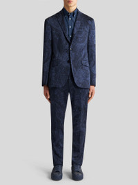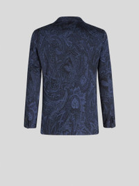 Jacquard jersey jacket with tone-on-tone Paisley motif. The undercollar is embellished with a geometric pattern. • Regular fit • Single-breasted closure • Welt breast pocket • Side slip pockets with flap • Rear vent • The model is 74.01" (188 cm) tall and wears a size 48 (IT) • Made in Italy PRODUCT DETAILS • 61% cotton, 21% viscose, 15% polyester, 2% polyamide, 1% elastane • Interior: 57% viscose, 43% polyester