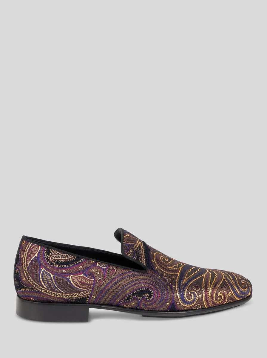 Loafers embellished with a lurex-adorned jacquard version of the iconic Paisley motif on the upper and a floral Paisley pattern under the sole. • Made in Italy PRODUCT DETAILS • Upper: 44% polyester, 27% acetate, 19% viscose, 6% modal, 4% metallised fibre • Lining: 100% calfskin • Sole: 100% cowhide