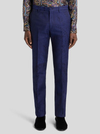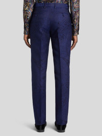 Tailored trousers in cotton-blend jacquard. This model features a tone-on-tone all-over Paisley motif enhanced by floral details. • Regular fit • Welt side slip pockets • Rear button-through welt pockets • Concealed zip and button closure • Made in Italy • The model is 6' 1" (186 cm) tall and wears a size 48 PRODUCT DETAILS • 37% viscose, 32% polyester, 30% cotton, 1% elastane
