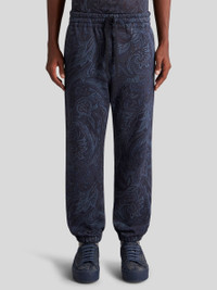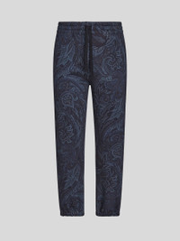 Cotton fleece jogging trousers with all-over decorative multicoloured Paisley print. This model is embellished with a tone-on-tone embroidered Pegaso symbol and ETRO logo on the back. • Regular fit • Side slip pockets • Rear pocket • Waist drawstring • Elasticated hem • The model is 73.6" (187 cm) tall and wears a size M (IT) • Made in Italy PRODUCT DETAILS • 100% cotton