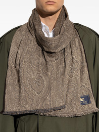 paisley-pattern fringed scarf Highlights - Brown - Paisley pattern - Fringed edges - Wool-blend - Logo patch Made in Italy Composition Wool 61%, Polyester 26%, Silk 13% SIZE & FIT Measurement LENGTH 78.74 in(200 cm) WIDTH 14.96 in(38 cm) Washing instructions Read Manufacturer Guidelines