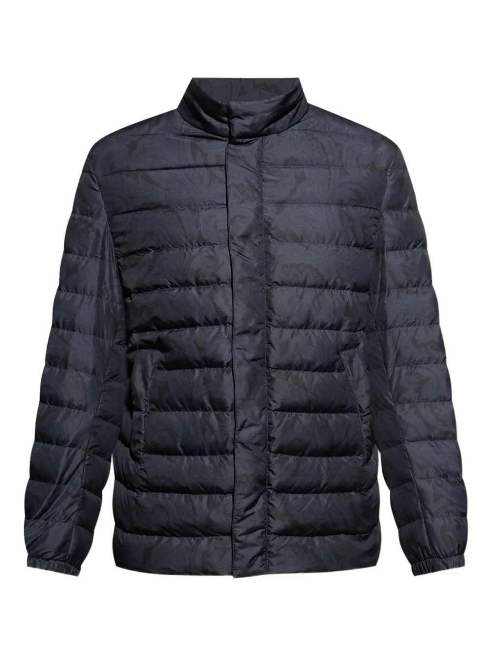paisley-pattern jacket Highlights - Blue - Paisley-pattern - Quilted design - High neck - Snap button fastening - Welt pockets Imported Composition Outer: Polyester 100% Lining: Down 80%, Viscose 52%, Acetate 48%, Feather 20% Washing instructions Read Manufacturer Guidelines