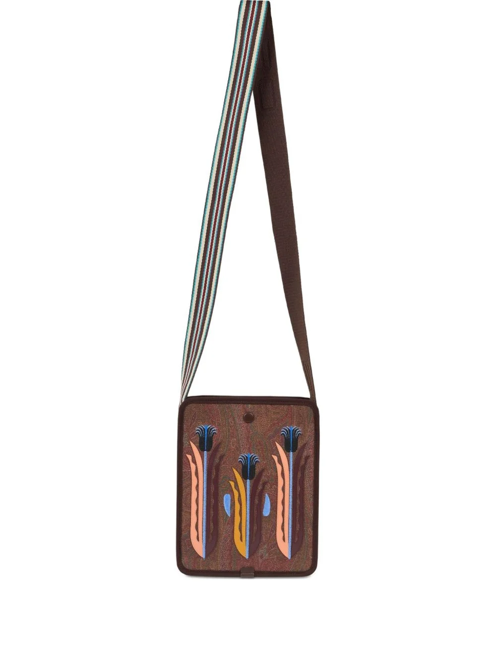 paisley-pattern messenger bag Highlights - Brown - Paisley pattern - Floral detail - Striped shoulder strap Made in Italy Composition PVC 100%