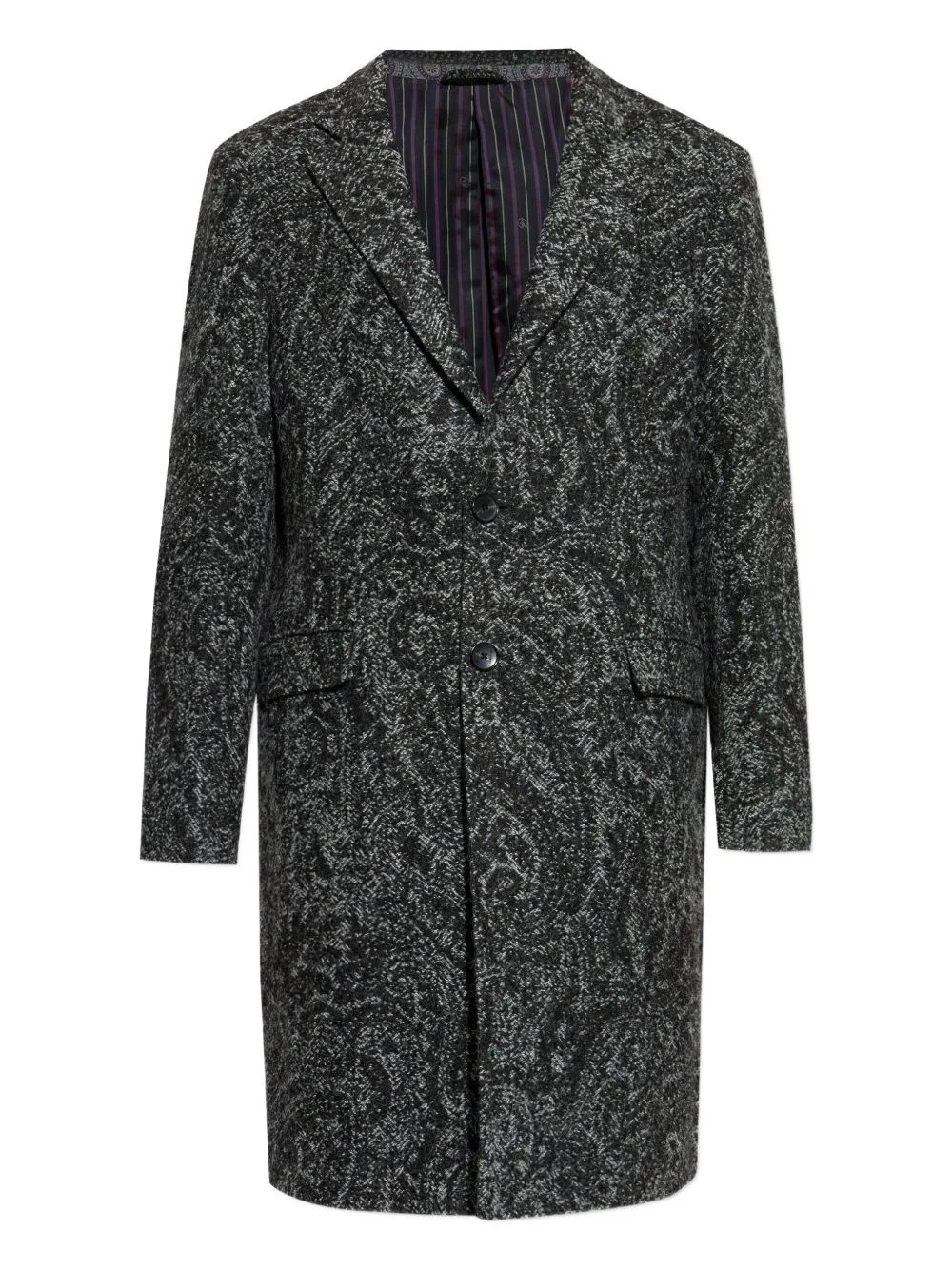 paisley-patterned long coat Highlights - Black - Paisley print - Notched lapels - Two front flat pockets - Front button fastening Made in Italy Composition Outer: Wool 35%, Alpaca Wool 25%, Polyamide 20%, Lyocell 20% Lining: Viscose 53%, Acetate 47%