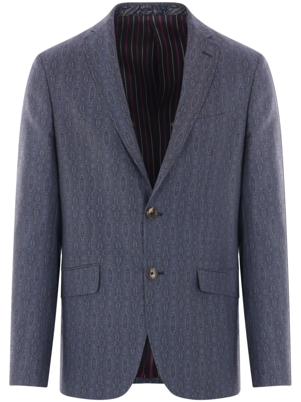 paisley-print blazer Highlights - Steel blue - Front button fastening - Two side flap pockets - Buttoned cuffs - Chest welt pocket Made in Italy Composition Lining: Viscose 53%, Acetate 47% Outer: Wool 100% Washing instructions Read Manufacturer Guidelines