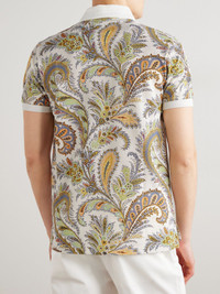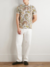 Roma Slim-Fit Paisley-Print Cotton-Piqué Polo Shirt Beige