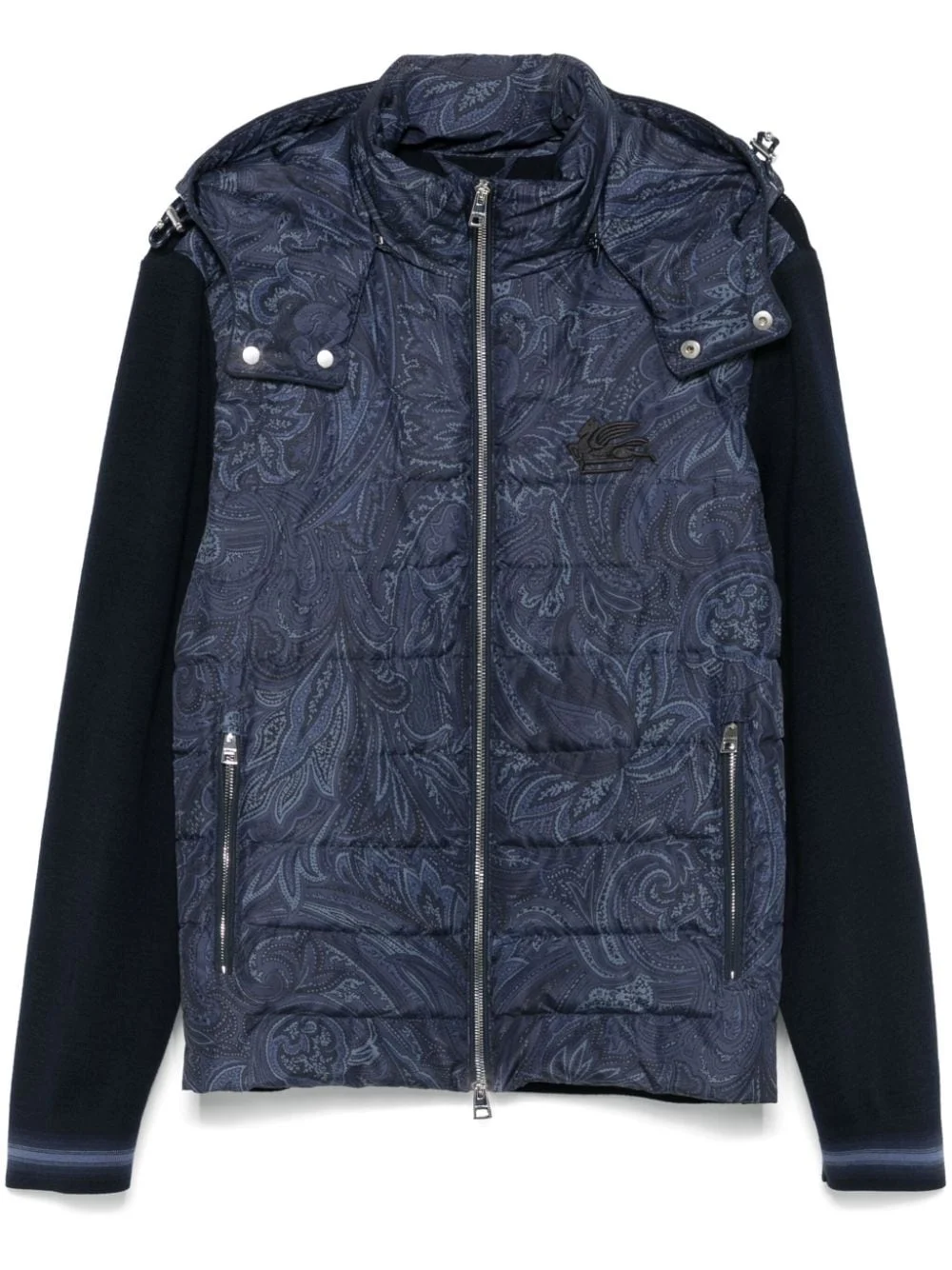 paisley-print jacket Highlights - Oxford blue - Wool blend - Down-feather filling - Paisley print - Front two-way zip fastening - Quilted panels - Detachable drawstring hood - Ribbed-knit sleeves - Striped edge - Signature pegaso motif - Two side zip-fastening pockets - Full lining - Straight hem Imported Composition Outer: Polyester 100%, Acrylic 50%, Wool 50% Lining: Polyester 100%, Down 85%, Feather 15% SIZE & FIT Model measurements Height 6 ft 2 in(1.87 m) Bust/Chest 36.22 in(92 cm) Hips 35.43 in(90 cm) Waist 29.13 in(74 cm) FittingInformation Designed for a regular fit, allowing for a comfortably loose fit throughout the body The detachable panel offers the preference for a different fit Made from a midweight fabric