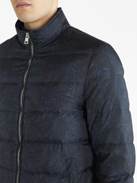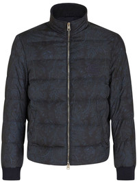 paisley-print padded jacket Highlights - Navy blue - Padded design - Paisley print - High neck - Front zip fastening - Long sleeves - Fitted-cuff sleeves - Two side slit pockets - Straight hem Imported Composition Outer: Polyamide 100%, Cotton 100% Lining: Polyester 100%, Duck Down 90%, Feather Down 10%