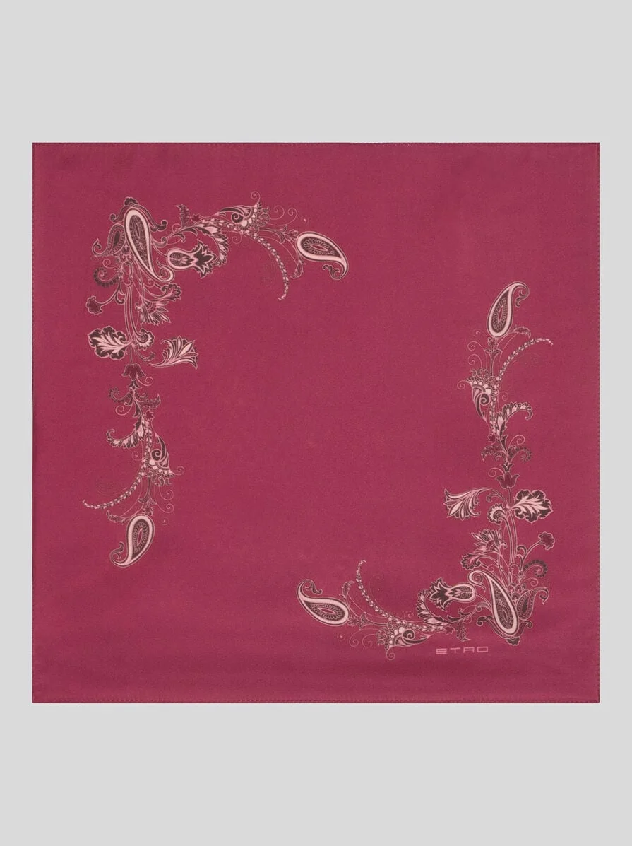 Pure silk twill pocket square with decorative, placed floral Paisley print. Completing the accessory is the ETRO logo at the end. • Size: 16.9 x 16.9 inches (43 x 43 cm) • Made in Italy PRODUCT DETAILS • 100% silk