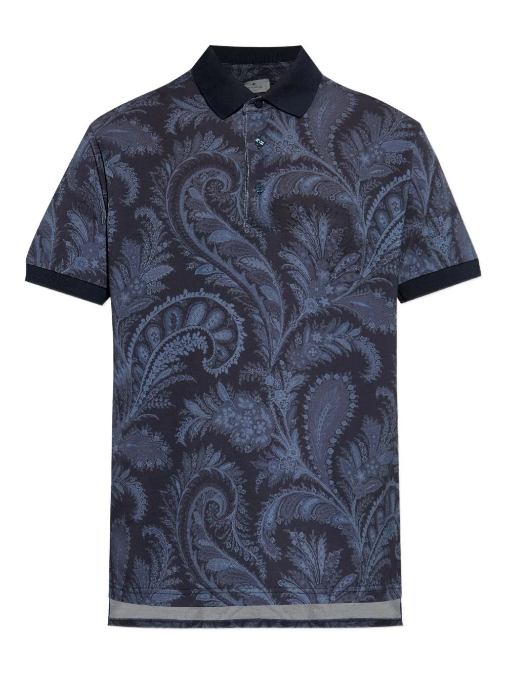 paisley-print polo shirt Highlights - Navy blue - Intricate paisley design - Polo collar - Front button placket - Short sleeves Made in Italy Composition Cotton 100%