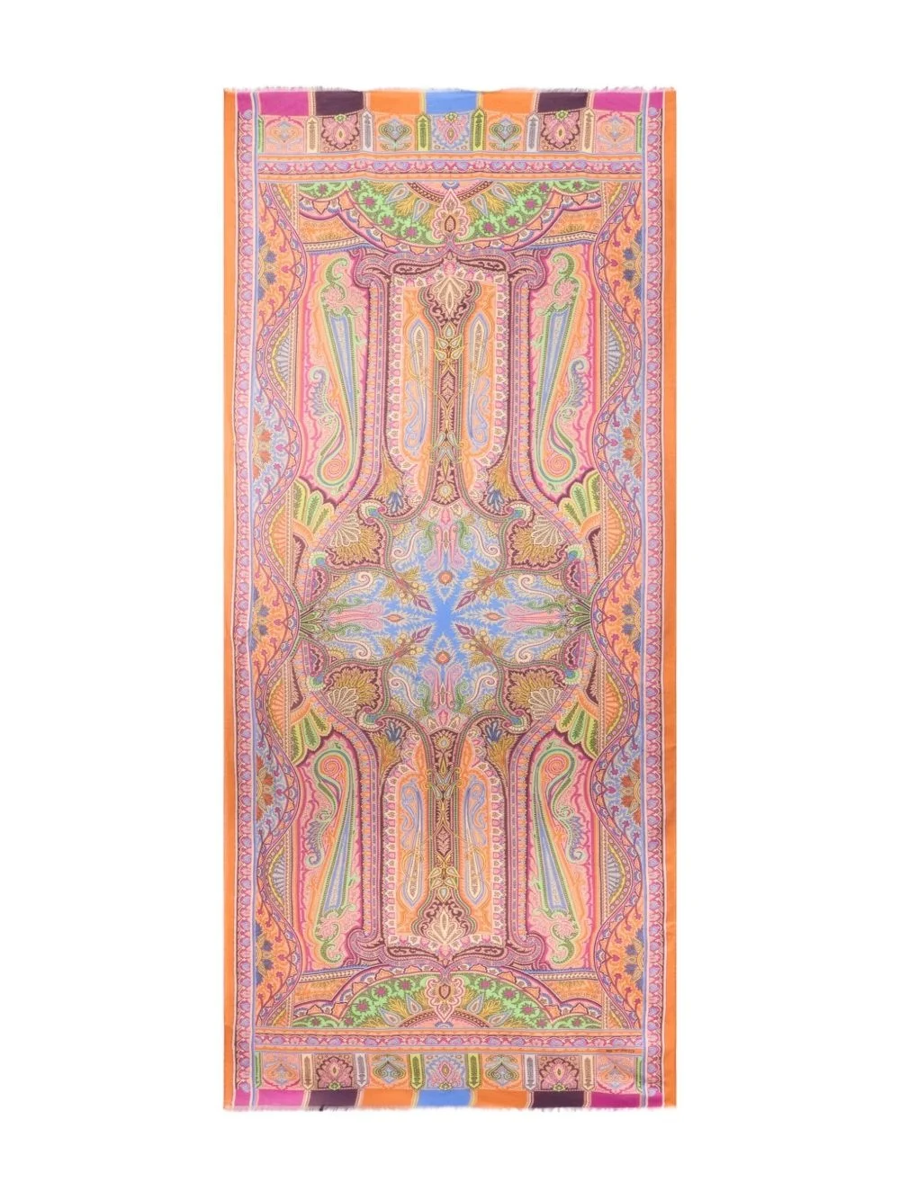 paisley-print scarf Highlights - Carrot orange - Logo print to the front - Frayed hem - Rectangle shape Made in Italy Composition Modal 90%, Cashmere 10% SIZE & FIT Measurement LENGTH 78.74 in(200 cm) WIDTH 26.77 in(68 cm)