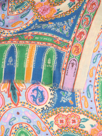 Wool- and silk-blend scarf with decorative print featuring an elaborate multicoloured geometric and Paisley motif. Completing the accessory are the slightly frayed short sides and ETRO logo in the corner. • Size: 26.8 x 78.7 inches (68 x 200 cm) • Made in Italy PRODUCT DETAILS • 70% wool, 30% silk