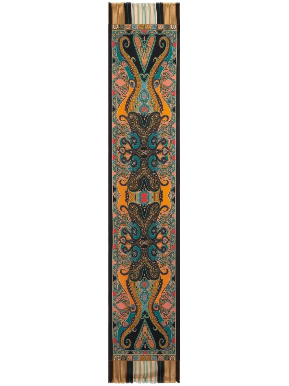 paisley-print silk scarf Highlights - Black/multicolour - Silk - Paisley print - Stripe detailing - Rectangle shape - Wraparound style Made in Italy Composition Silk 100% SIZE & FIT Measurement LENGTH 70.86 in(180 cm) WIDTH 13.77 in(35 cm)