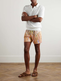 Straight-Leg Mid-Length Paisley-Print Swim Shorts