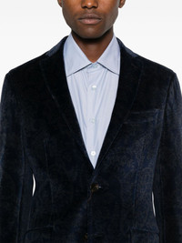 paisley-print velvet blazer Highlights - Navy blue - Cotton - Velvet - Paisley print - Notched lapels - Long sleeves - Buttoned-cuff sleeves - Chest welt pocket - Two side flap pockets - English rear vents - Internal slip pockets - Full lining - Front button fastening Made in Italy Composition Lining: Viscose 100% Outer: Cotton 100% SIZE & FIT Model measurements Height 6 ft 2 in(1.88 m) Bust/Chest 36.61 in(93 cm) Hips 35.82 in(91 cm) Waist 27.95 in(71 cm) FittingInformation Designed for a slim fit, offering a comfortable fit that sits just away from the body The internal shoulder pads offer a structured shape Made from a midweight non-stretch fabric This piece fits true to size – take your usual size