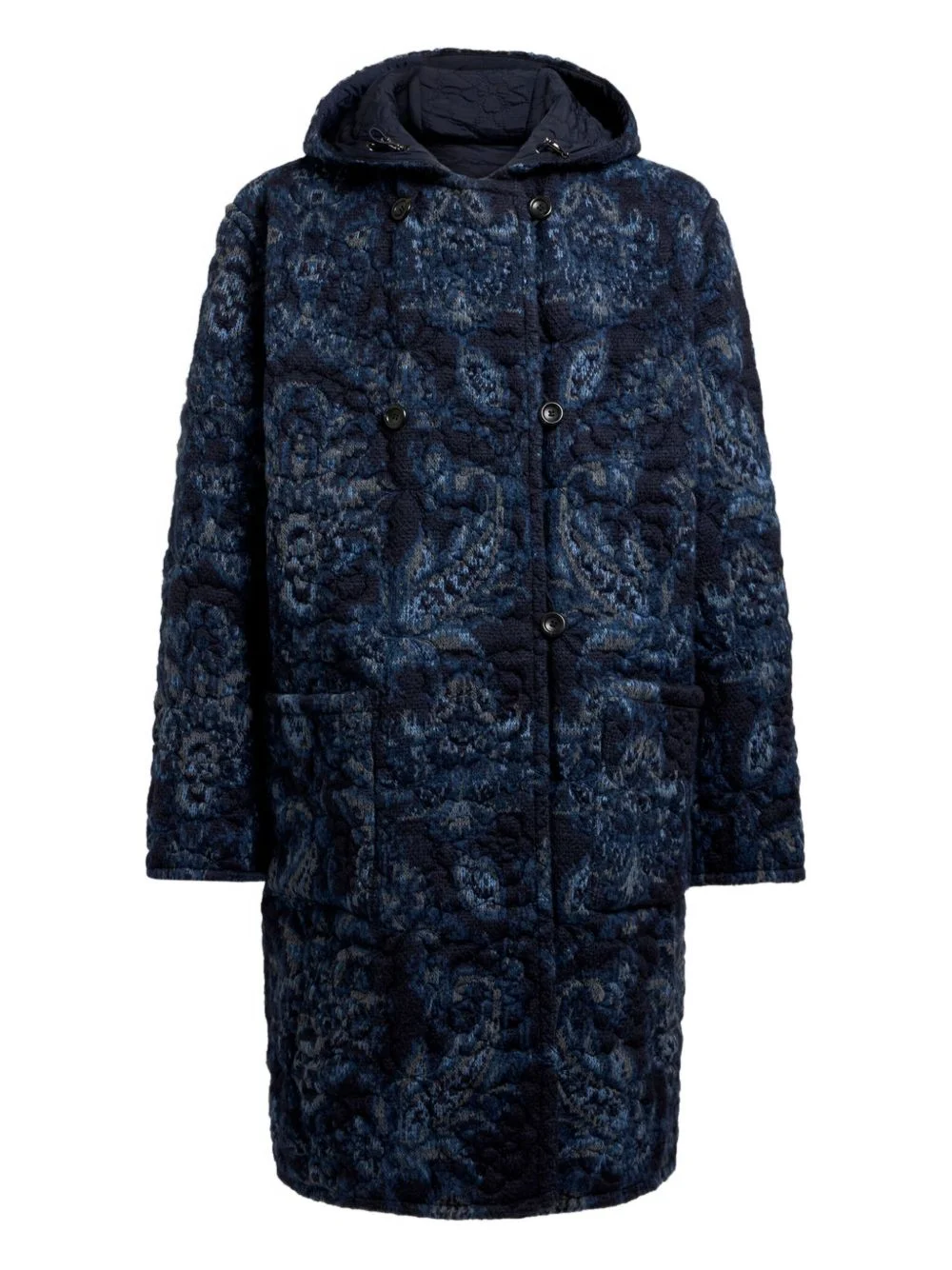paisley quilted hooded coat Highlights - Dark blue - Paisley pattern - Quilted texture - Double-breasted fastening - Hooded - Patch pockets Imported Composition Fabric 100% Washing instructions Read Manufacturer Guidelines