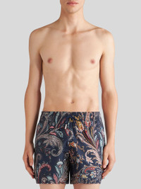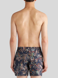 Technical canvas swim shorts with all-over decorative Paisley print. This model is embellished with a patch bearing the Pegaso symbol and an embroidered ETRO logo on the back. • Regular fit • Side slip pockets • Flap pocket on the back • Drawstring closure • The model is 74.01" (188 cm) tall and wears a size M (IT) • Made in Italy PRODUCT DETAILS • Exterior: 100% polyester • Lining: 90% polyester, 10% elastane
