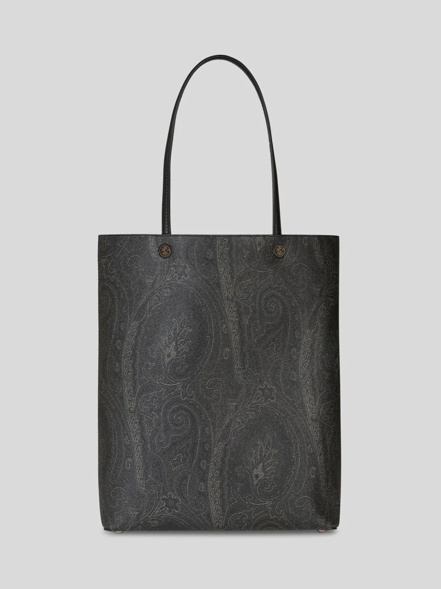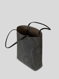 Medium-size tote bag in iconic Paisley jacquard fabric, with leather details. This item comes with a removable inner clutch. • Size: 14.96 x 116.14 x 4.72 inches (38 x 29,5 x 12 cm) • Removable mini pouch • Golden-finish metal accessories • Made in Italy PRODUCT DETAILS • Exterior: Paisley jacquard cotton fabric coated with matt texture and lined with canvas • Coating: 100% PVC