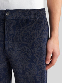 Regular-fit wool- and cotton-blend trousers with tone-on-tone floral Paisley motif all over. PRODUCT DETAILS • 47% wool, 45% cotton, 8% polyester