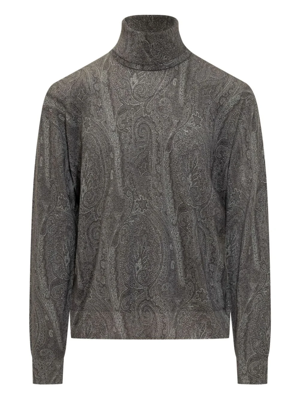 paisley turtleneck sweater Highlights - Grey - Paisley pattern - Turtleneck - Long sleeves - Ribbed cuffs - Straight hem Made in Italy Composition Silk 55%, Cashmere 45% SIZE & FIT FittingInformation Designed for a relaxed fit, this piece allows for comfort and movement when worn Made with a midweight knit, this piece offers some stretch Washing instructions Dry Clean Only
