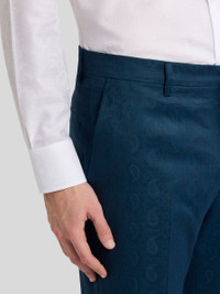 Pure wool trousers with tone-on-tone Paisley jacquard motif all over and pressed creases down the legs. • Roma fit • Concealed zip and branded-button closure • Side slip pockets • Rear button-through welt pockets • Made in Italy • The model is 6' 1½" (187 cm) tall and wears a size 48 PRODUCT DETAILS • 100% wool