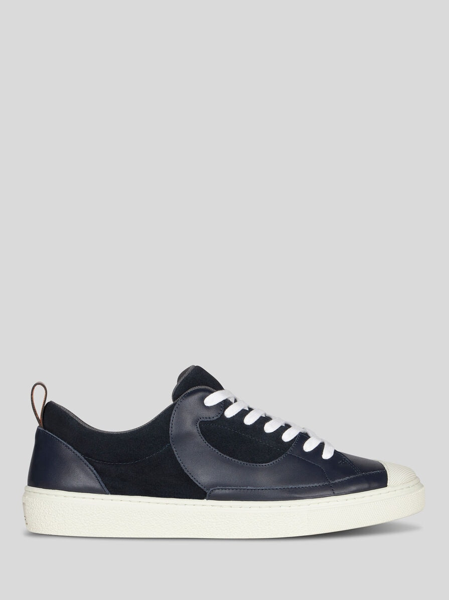 Suede sneakers with tone-on-tone leather Paisley detail. This model is enhanced by the embossed ETRO logo on the back. They feature a loop on the heel. • Lace fastening • Made in Italy PRODUCT DETAILS • Upper: 100% calfskin • Lining: 100% elastodiene • Insole: 100% calfskin • Sole: 100% rubber