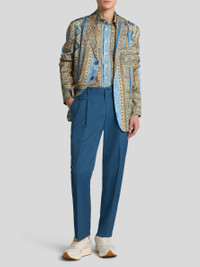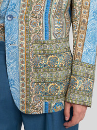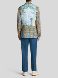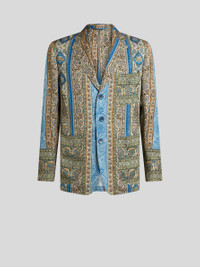 Partially-lined single-breasted blazer featuring an all-over nature-inspired geometric print. The contrasting undercollar complements the design. • Regular fit • Classic lapels • Single-breasted closure with branded buttons • Breast patch pocket • Patch pockets on the front • Branded button on cuffs • Made in Italy • The model is 6' 1½" (187 cm) tall and wears a size 48 PRODUCT DETAILS • 100% viscose • Sleeve lining: 52% viscose, 48% acetate