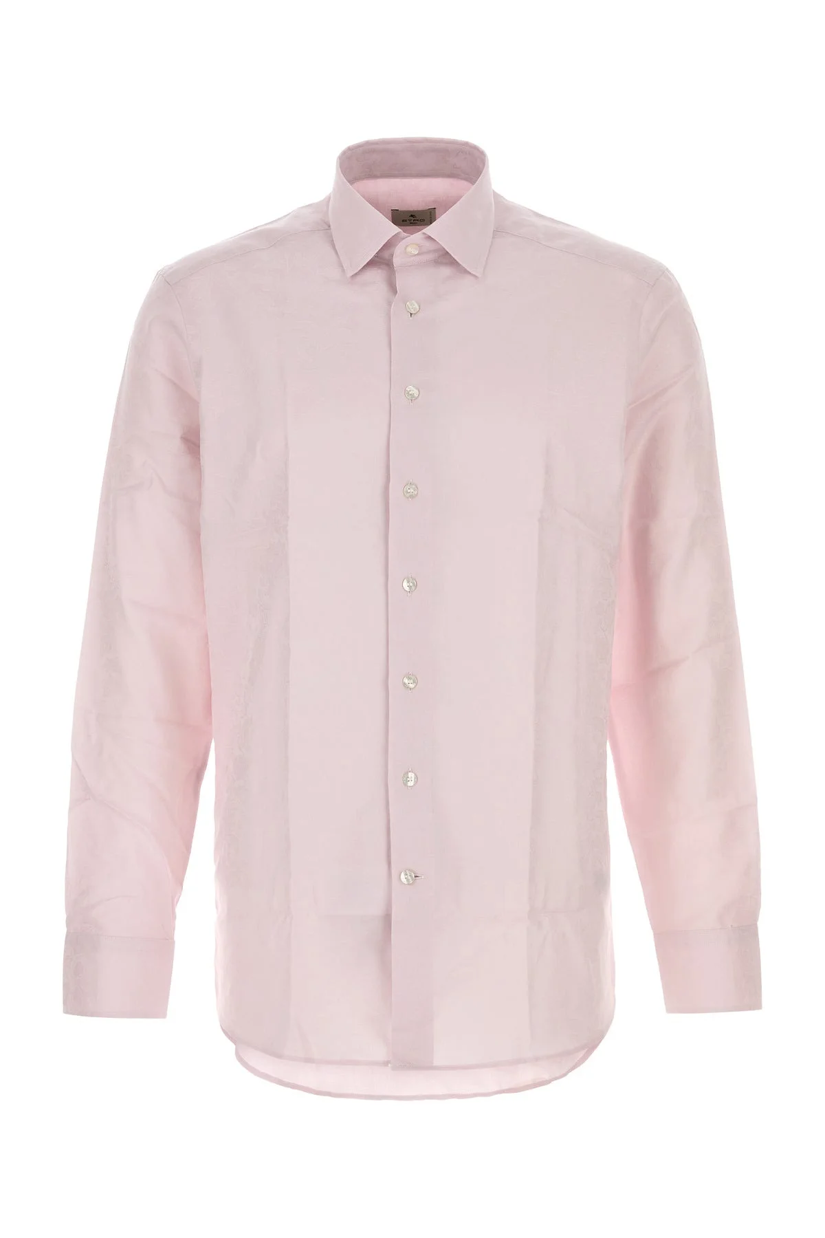 Shirt realized in jacquard characterized by floral embroidery on the entire surface. - Short-pointed collar - Buttons closure - Rounded cuffs with button - Rear yoke DETAILS Pastel pink jacquard shirt Exterior: 100% Cotton Made in italy Sample size: 39