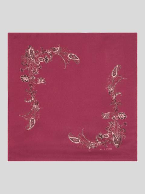 Pure silk twill pocket square with floral and peacock print and contrasting edges. This accessory is complete with an ETRO logo in the corner. • Size: 16.9 x 16.9 inches (43 x 43 cm) • Made in Italy PRODUCT DETAILS • 100% silk