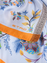 Pure silk twill pocket square with floral and peacock print and contrasting edges. This accessory is complete with an ETRO logo in the corner. • Size: 16.9 x 16.9 inches (43 x 43 cm) • Made in Italy PRODUCT DETAILS • 100% silk