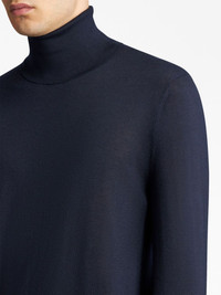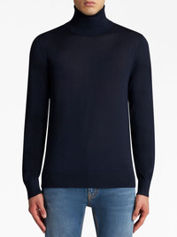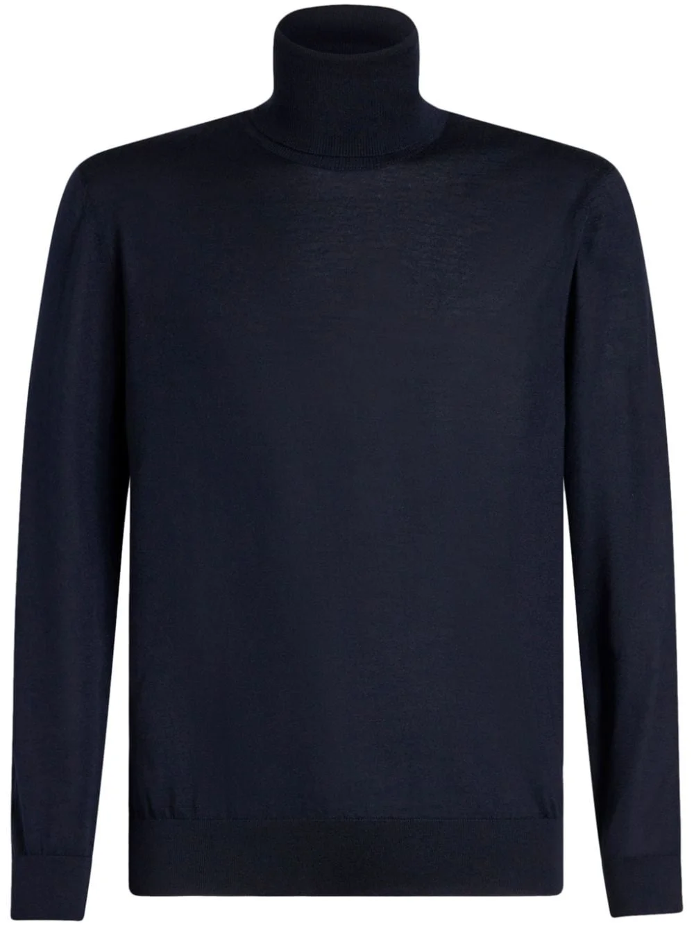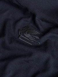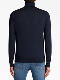 Pegaso-embroidered high-neck jumper Highlights - Navy blue - Virgin wool - Fine knit - Signature pegaso embroidered logo to the rear - High neck - Long sleeves - Ribbed cuffs and hem - Straight hem Made in Italy Composition Virgin Wool 100%