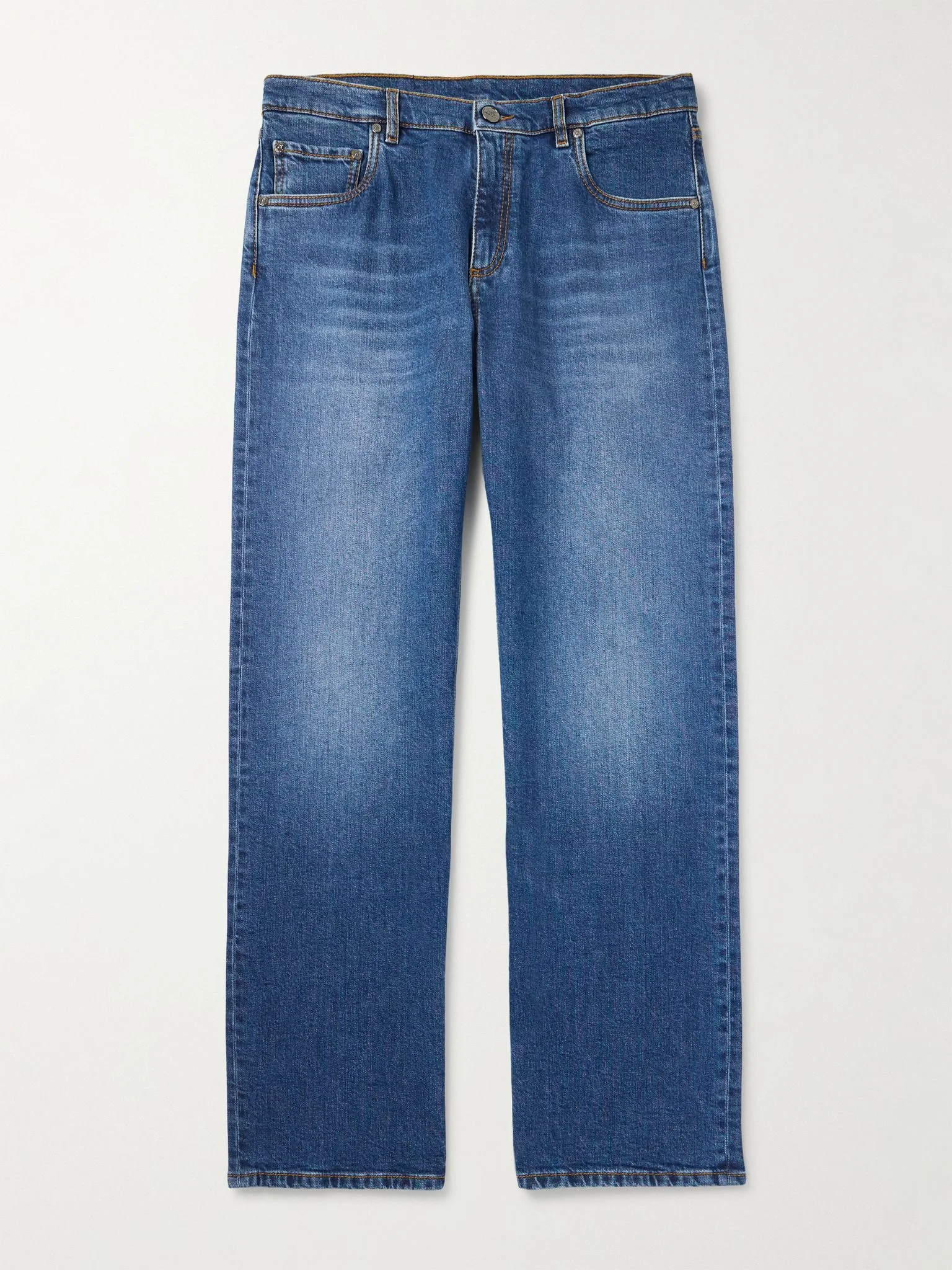 Etro’s jeans have been made in Italy from classic blue denim that's slightly faded and blended with a hint of stretch. They're cut for a straight fit and embroidered with an enlarged 'Pegasus' motif on the back pocket. Size & Fit - Fits true to size. Take your normal size - Regular-straight leg, mid-rise style - Mid-weight, non-stretchy fabric - Model is shown wearing a 32 - Model measures: waist size 32, height 6'2"/ 188cm Details & Care - Blue denim - Button and zip fastening - 98% cotton, 2% elastane - Machine wash