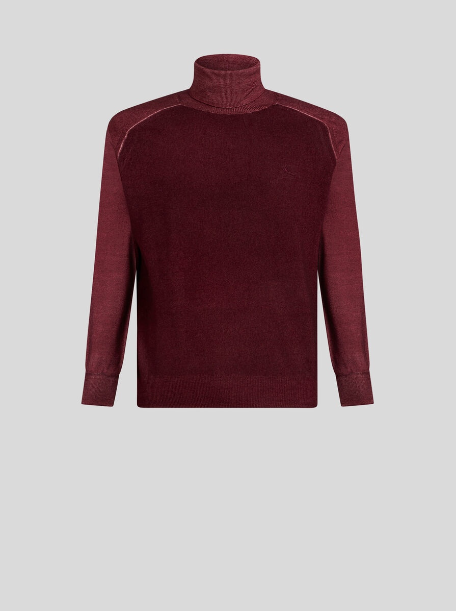 Wool turtleneck sweater, embellished with tone-on-tone embroidered Pegaso symbol and ETRO logo on the chest. PRODUCT DETAILS • 100% wool