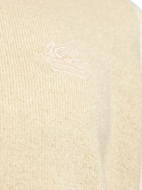 Pegaso-embroidered wool jumper Highlights - Beige - Wool - Fine knit - Signature pegaso motif - Crew neck - Long sleeves - Ribbed cuffs and hem - Straight hem Made in Italy Composition Wool 100% SIZE & FIT Measurement CHEST 45.66 in(116 cm) SLEEVE LENGTH 34.64 in(88 cm)
