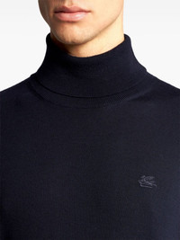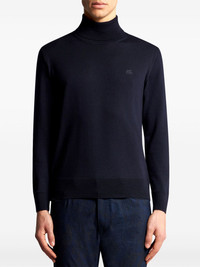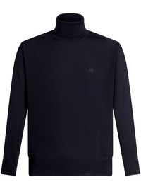 Pegaso-embroidered wool jumper Highlights - Navy blue - Wool - Fine ribbed - Signature pegaso motif - High neck - Long sleeves - Straight hem Made in Italy Composition Wool 100% SIZE & FIT Measurement CHEST 39.37 in(100 cm) SLEEVE LENGTH 32.28 in(82 cm) Shoulder Width 14.96 in(38 cm) FittingInformation Designed for a relaxed fit, this piece allows for comfort and movement when worn The ribbed hem offers a close, comfortable fit Made with a midweight knit, this piece offers some stretch This piece fits true to size – take your usual size