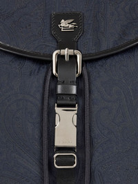 pegaso-logo backpack Highlights - Blue - Jacquard - Adjustable shoulder straps - Top handle - Buckle fastening - Drawstring closure - Side pockets Made in Italy Composition Outer: Polyamide 100% Lining: Cotton 95%, Acrylic 5% SIZE & FIT Measurement DEPTH 7.08 in(18 cm) HEIGHT 15.74 in(40 cm) WIDTH 11.41 in(29 cm)