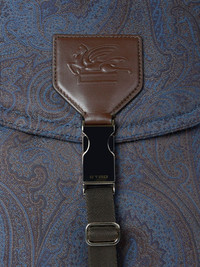 Pegaso-motif backpack Highlights - Brown/blue - Cotton blend - Patterned jacquard - Paisley print - Signature pegaso motif - Logo patch to the front - Foldover top - Snap-lock closure - Drawstring fastening - Adjustable shoulder straps - Single top handle - Main compartment Made in Italy Composition Outer: Cotton 76%, Polyester 24%