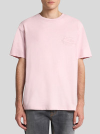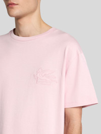 Plain-coloured pure cotton crew-neck T-shirt. The tonal embroidered ETRO monogram and iconic Pegaso symbol stand out on the chest. • Regular fit • Made in Italy • The model is 6' 1½" (187 cm) tall and wears a size M PRODUCT DETAILS • 100% cotton