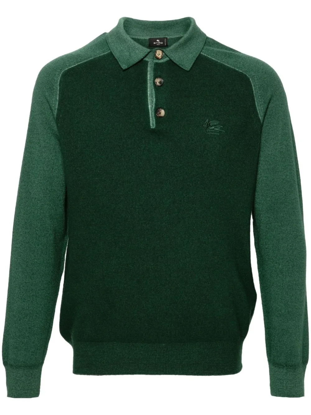 Pegaso-embroidered wool sweater Highlights - Forest green - Wool - Fine knit - Polo collar - Long sleeves - Front button placket - Signature pegaso motif - Ribbed cuffs and hem Made in Italy Composition Wool 100% SIZE & FIT Model measurements Height 6 ft 2 in(1.87 m) Bust/Chest 38.18 in(97 cm) Hips 36.61 in(93 cm) Waist 29.13 in(74 cm) FittingInformation Designed for a relaxed fit, this piece allows for comfort and movement when worn The ribbed hem offers a close, comfortable fit Made with a midweight knit, this piece offers some stretch