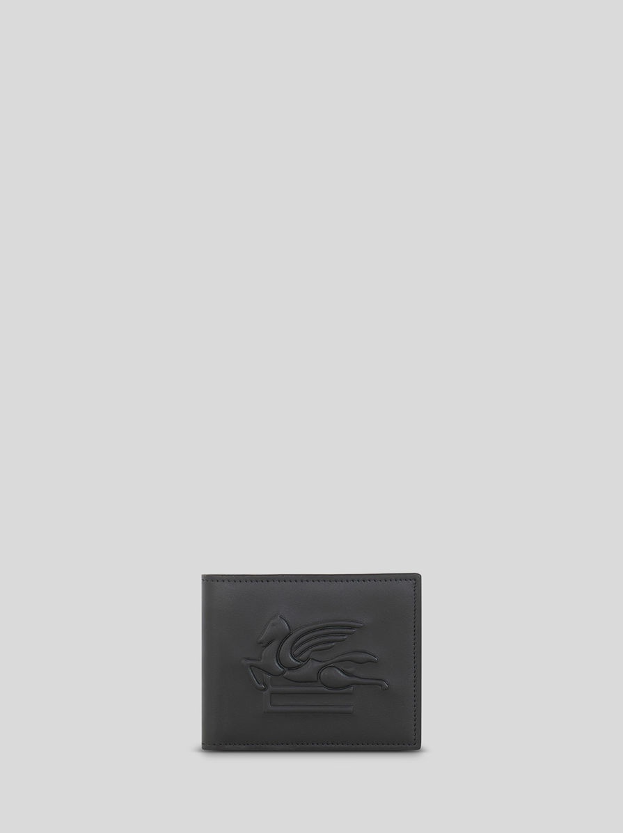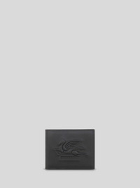 Leather wallet embellished with raised ETRO logo and Pegaso symbol on the front. PRODUCT DETAILS • 10,5 x 9 cm / 4.13 x 3.54 inches • 100% leather • Lining: 100% nylon • Banknote compartment • Card slots • Made in Italy