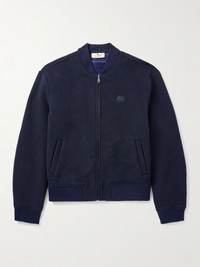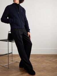 Logo-Embroidered Wool-Blend Bomber Jacket Blue
