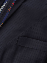 pinstripe-pattern double-breasted blazer navy blue virgin wool blend pinstripe pattern double-breasted button fastening chest welt pocket side patch pockets long sleeves Made in Italy Composition Lining: Viscose 100% Outer: Virgin Wool 100%