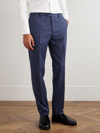 Etro's suit is a stellar choice if you've got a few occasions in the diary. Made from pure wool woven with subtle pinstripes, it has slim-fitting, flat-front trousers and a single-breasted jacket with notch lapels and angled flap pockets. The paisley-print lining will look great when you slip your jacket off, too. Size & Fit - Fits true to size. Take your normal size - Regular cut blazer, tailored for a comfortable fit - Slim-tapered leg, mid-rise trousers - Unfinished hems; alter to fit - Mid-weight, non-stretchy fabric - Model is shown wearing an IT 48 - Model measures: chest 38"/ 96cm, waist size 32, height 6'2"/ 188cm Details & Care - Tonal-blue wool - Jacket: notch lapels, non-functioning buttoned cuffs, chest welt pocket, two front flap pockets, two internal pockets, double vent, fully lined - Trousers: belt loops, two front slash pockets, two back buttoned welt pockets, unfinished hems - Two button jacket; button, hook and zip-fastening trousers - 100% wool; lining: 100% viscose - Dry clean
